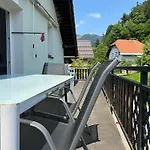 Situé à moins de 5 minutes en voiture du Gornjesavski muzej Jesenice, Apartma Rekar - A House, Where You Can Relax In The Embrace Of Nature dispose d'une terrasse avec une vue sur les montagnes.